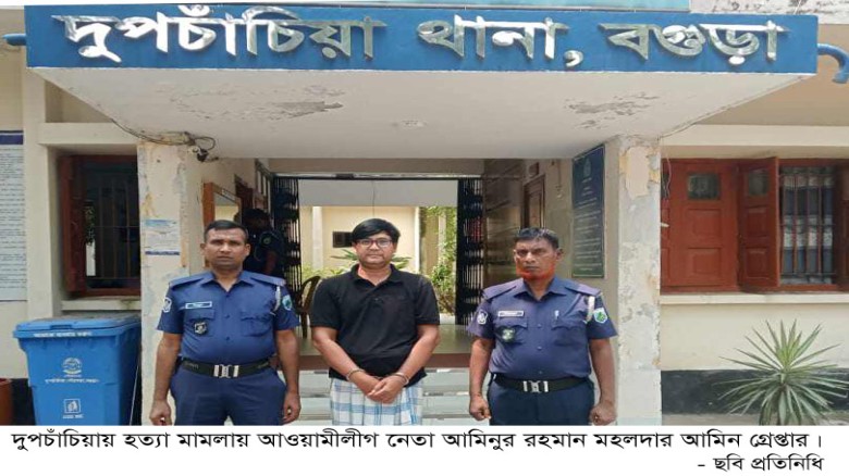 গত মঙ্গলবার রাতে দুপচাঁচিয়া থানা পুলিশ বিশেষ অভিযান চালিয়ে বৈষম্যবিরোধী ছাত্র আন্দোলনে নিহত শ্রমিকদল নেতা আবু রায়হান রাহিম হত্যা মামলার আসামি পৌর আওয়ামীলীগের সাধারণ সম্পাদক ও উপজেলা পরিষদের সাবেক ভাইস চেয়ারম্যান আমিনুর রহমান মহলদার আমিন (৪৯) কে গ্রেপ্তার করেছে। থানা সূত্রে জানা গেছে, ঘটনার দিন গত মঙ্গলবার রাতে পুলিশ গোপন সূত্রে খবর পেয়ে উপজেলার মহলদার পাড়ায় বিশেষ অভিযান চালান। এসময় পৌরসভার ৪নং ওয়ার্ডের মহলদারপাড়ার মৃত ওসমান আলী মহলদারের ছেলে পৌর আওয়ামীলীগের সাধারণ সম্পাদক ও উপজেলা পরিষদের সাবেক ভাইস চেয়ারম্যান আমিনুর রহমান মহলদার আমিনকে গ্রেপ্তার করে। সে গত বছরের ৪ আগস্ট রোববার বেলা ১১টায় বৈষম্যবিরোধী ছাত্র আন্দোলনে সদরের চকসুখানগাড়ী গ্রামের মৃত শাহজাহান আলীর ছেলে আবু রায়হান ওরফে রাহিম (২৯) হত্যা মামলার সন্দিহাল আসামি। পুলিশ গ্রেপ্তারকৃত আসামি আমিনুর রহমান মহলদার আমিনকে গতকাল বুধবার তাকে বগুড়া কোর্ট হাজতে প্রেরণ করেছেন।